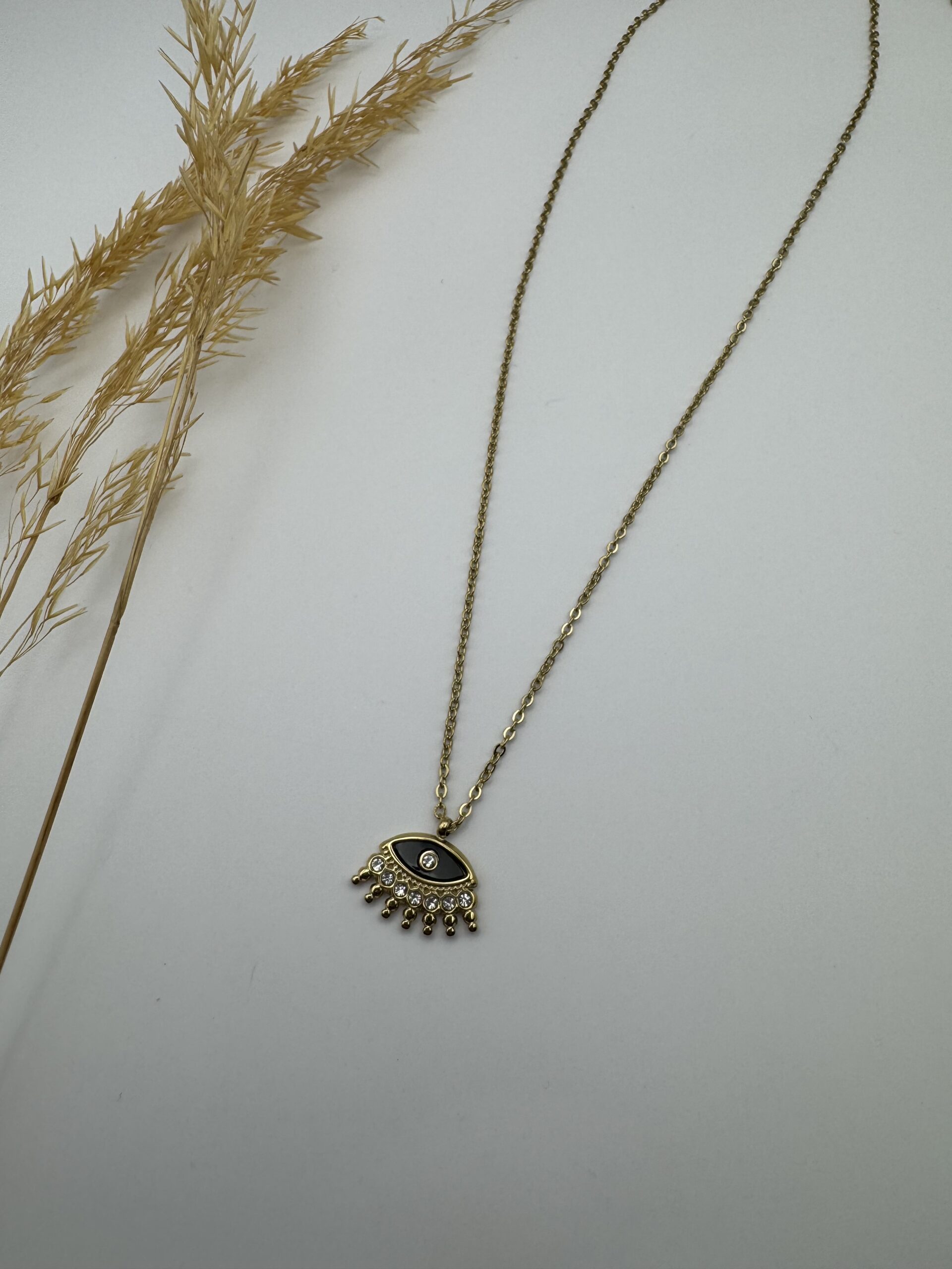 Ένα κομψό και διαχρονικό κόσμημα με διακριτικό ματάκι στο κέντρο, ιδανικό για καθημερινή χρήση αλλά και layering με άλλα κολιέ. Το ματάκι, σύμβολο προστασίας και καλής ενέργειας, προσθέτει έναν διακριτικό συμβολισμό στο στυλ σας.