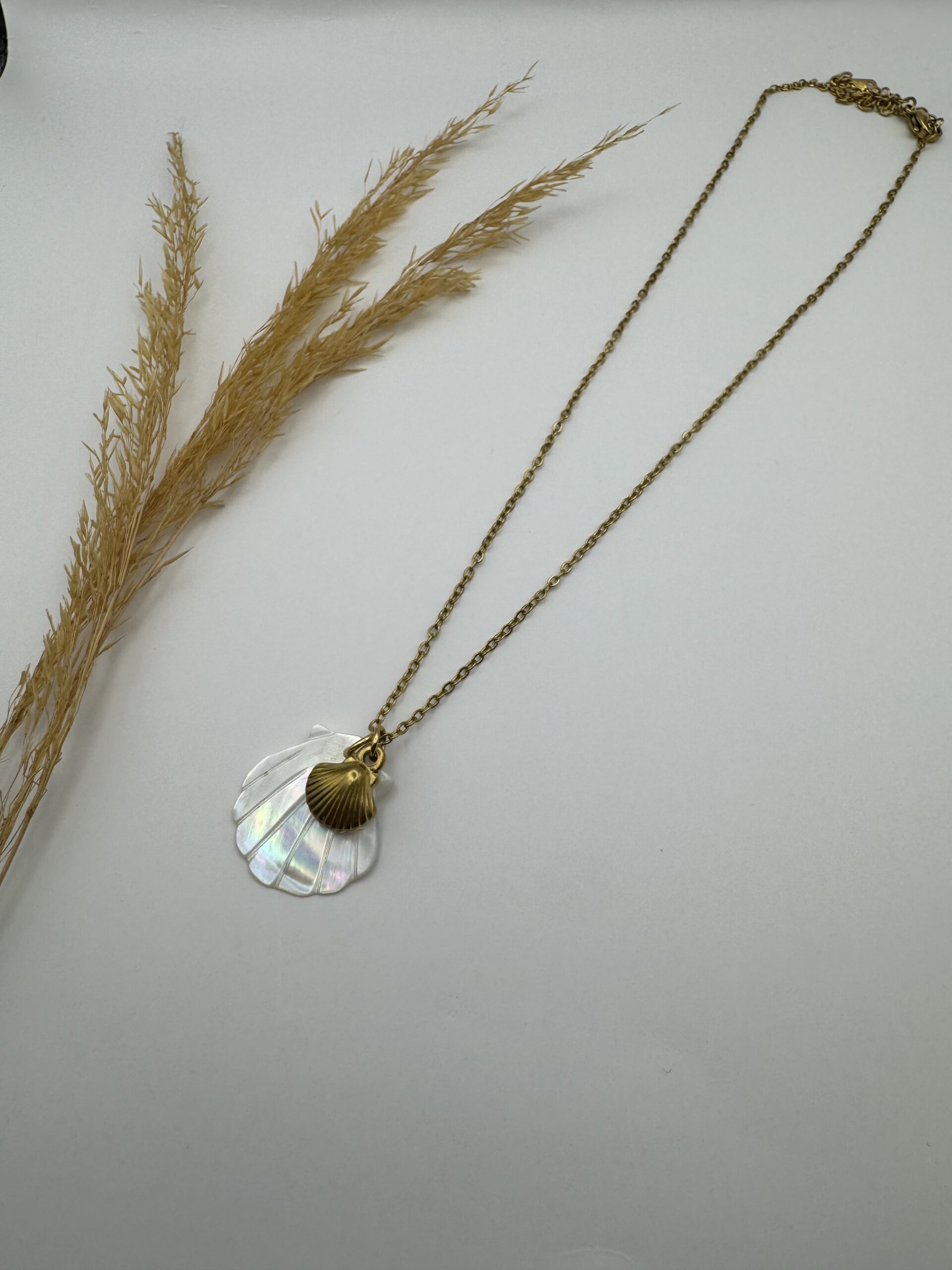 Ατσάλινο κολιέ με κρεμαστό κοχύλι και ατσάλινο κοχυλάκι προσφέροντας σου μια καλοκαιρινή διάθεση.